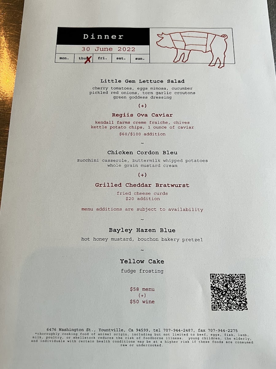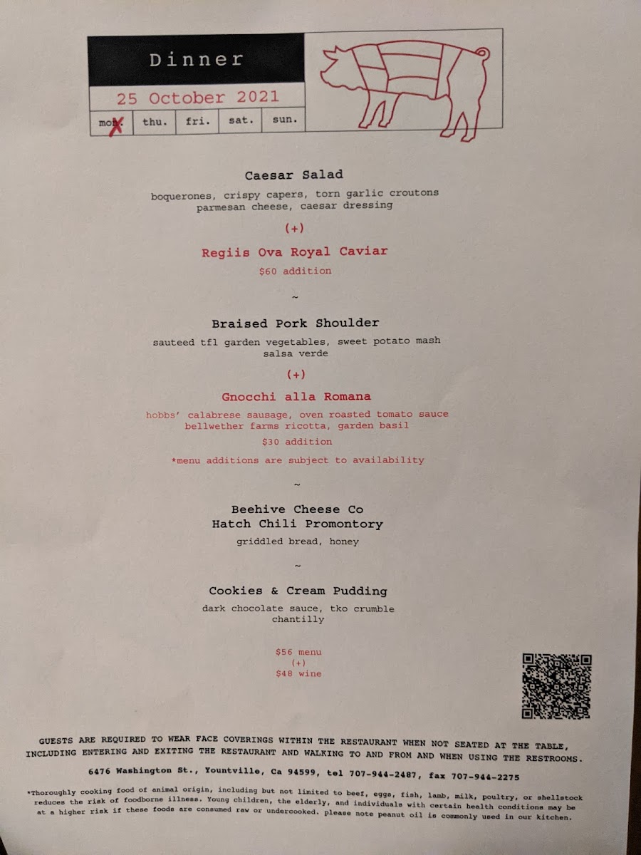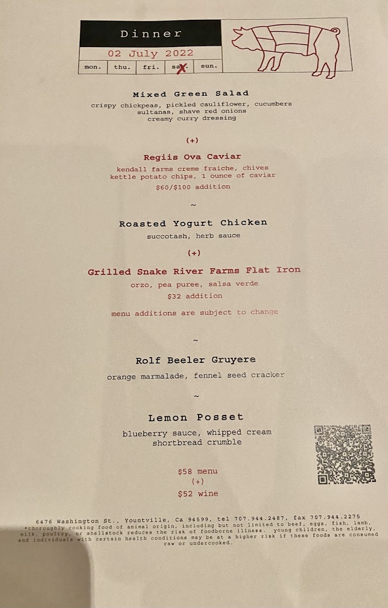 Welcome to Ad Hoc, the culinary gem nestled in Yountville, California, where exceptional food and heartfelt service converge. Known for its family-style dining, Ad Hoc offers a prix fixe menu that delights the senses with seasonal, locally sourced ingredients. Each dining experience begins with vibrant salads, followed by standout entrées like their famous Buttermilk Fried Chicken and succulent roasted meats, each dish elevated by impeccable seasoning and presentation. Guests rave about their unforgettable meals, like the marinated skirt steak paired with Chimichurri sauce and the indulgent gingerbread cake dessert.